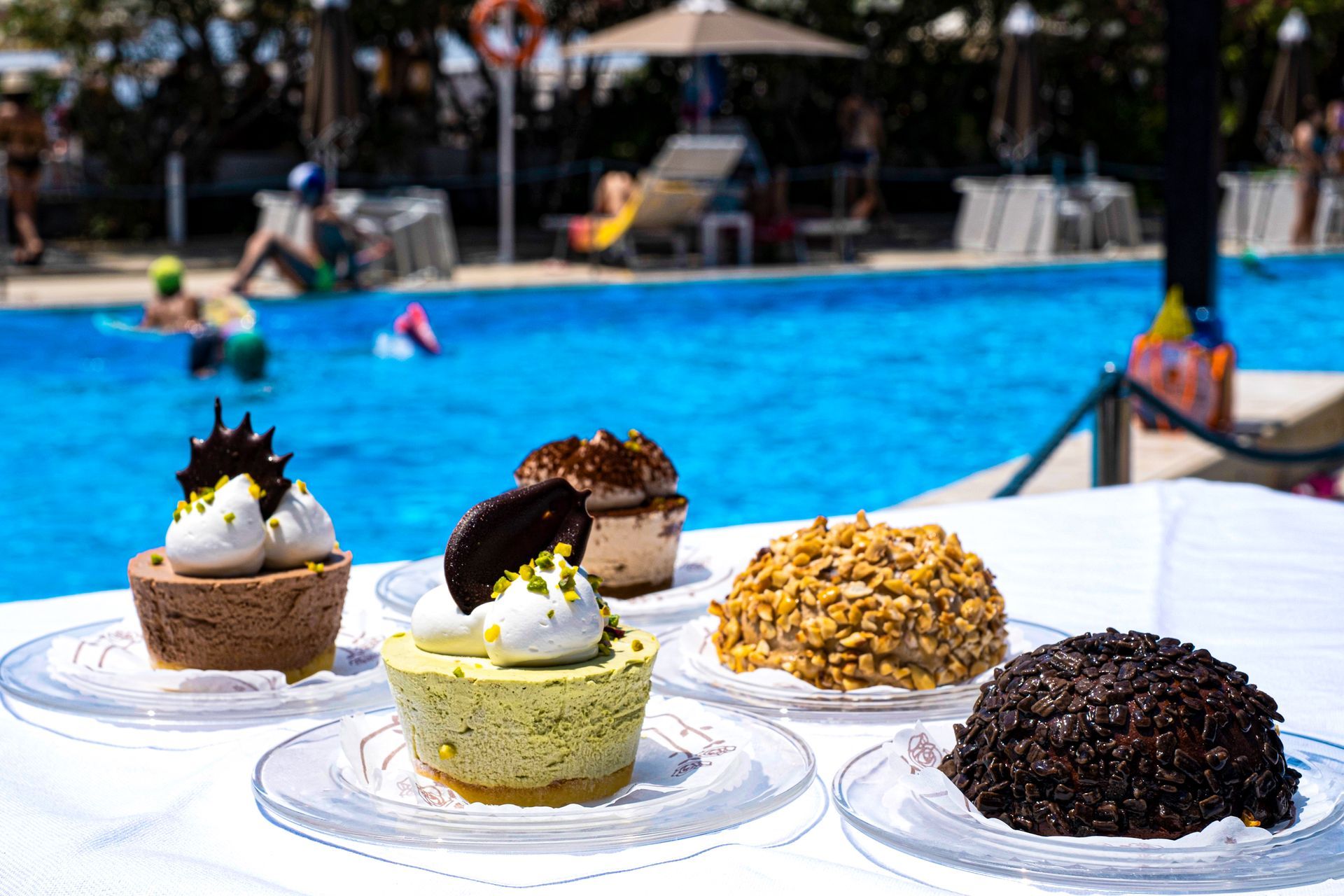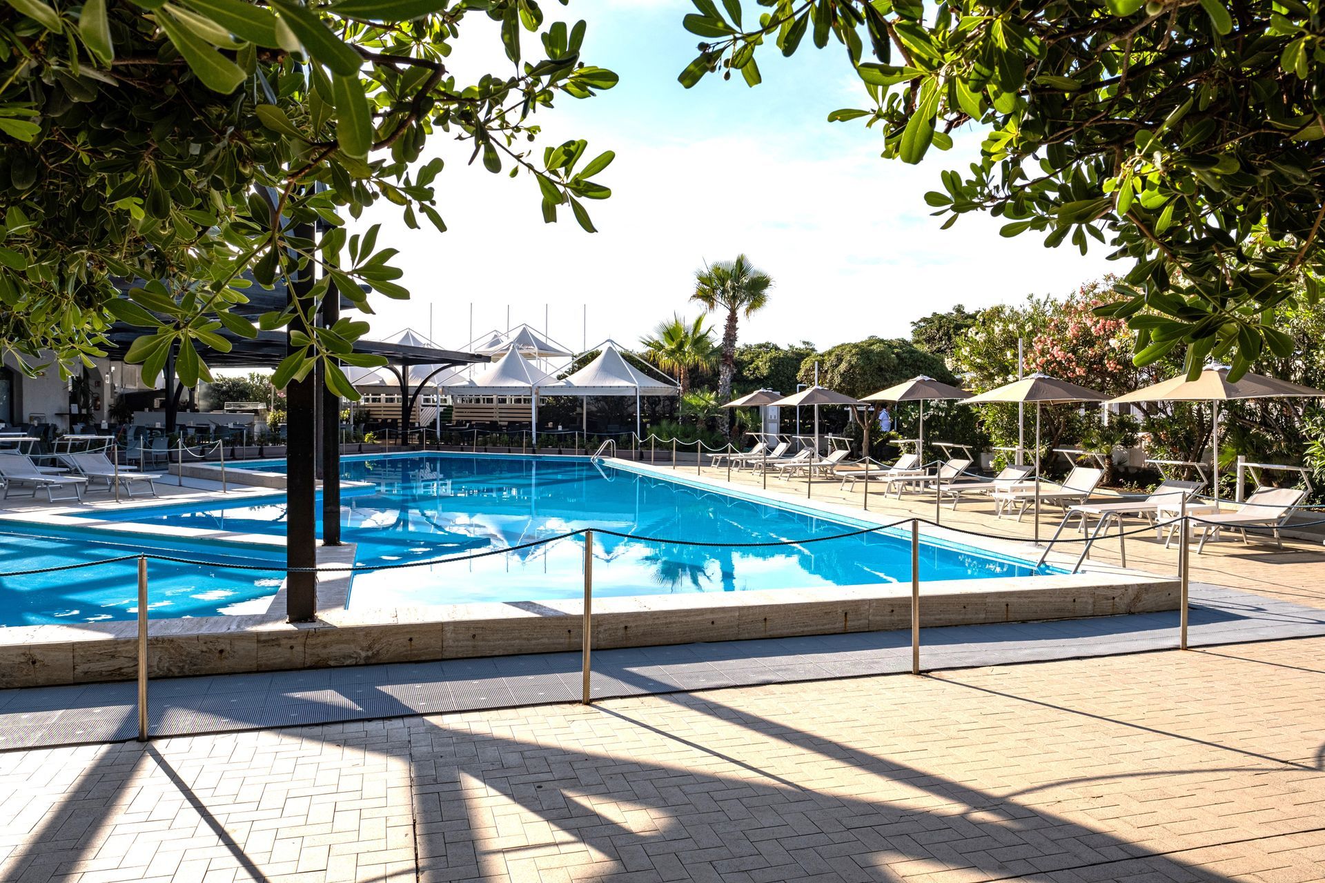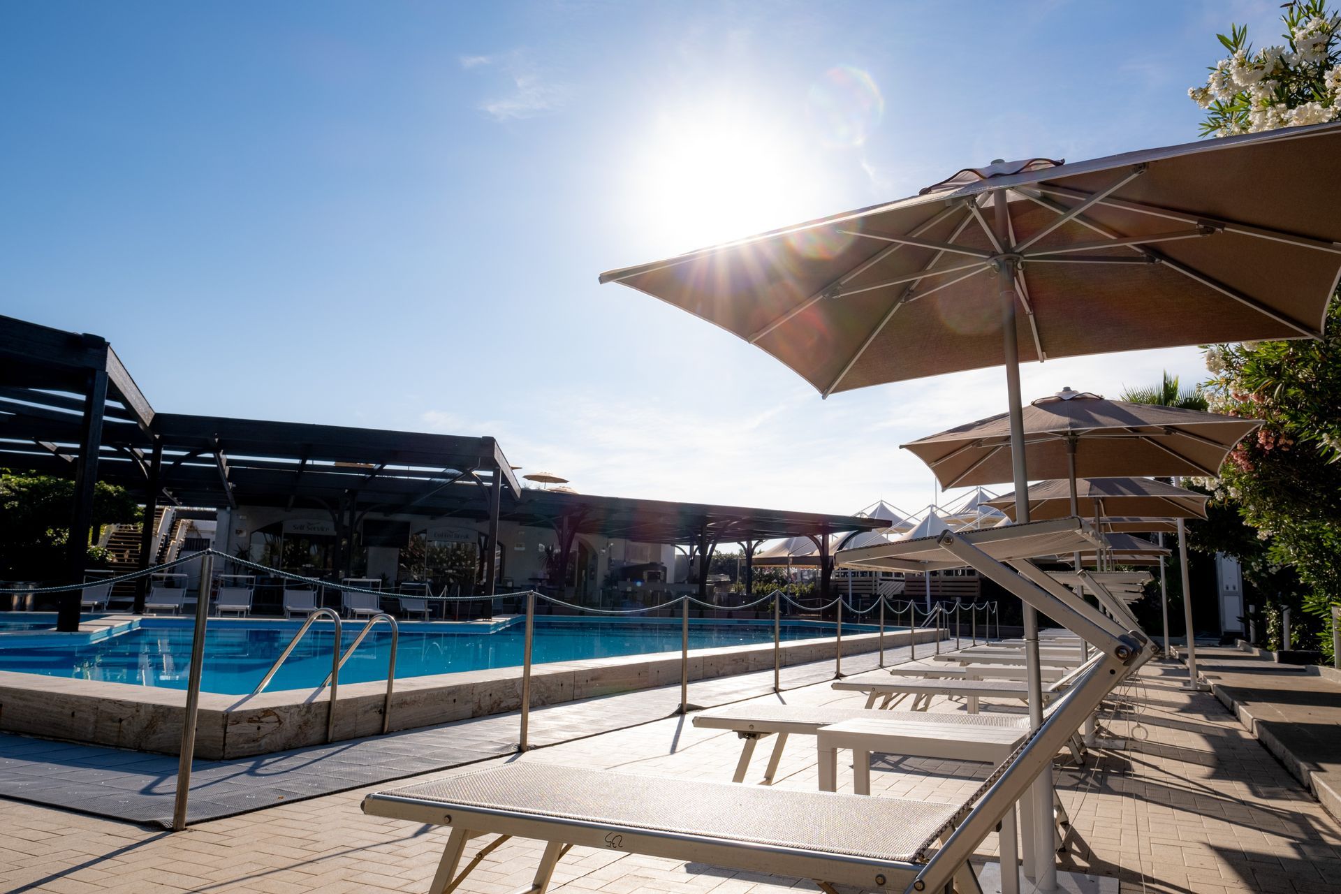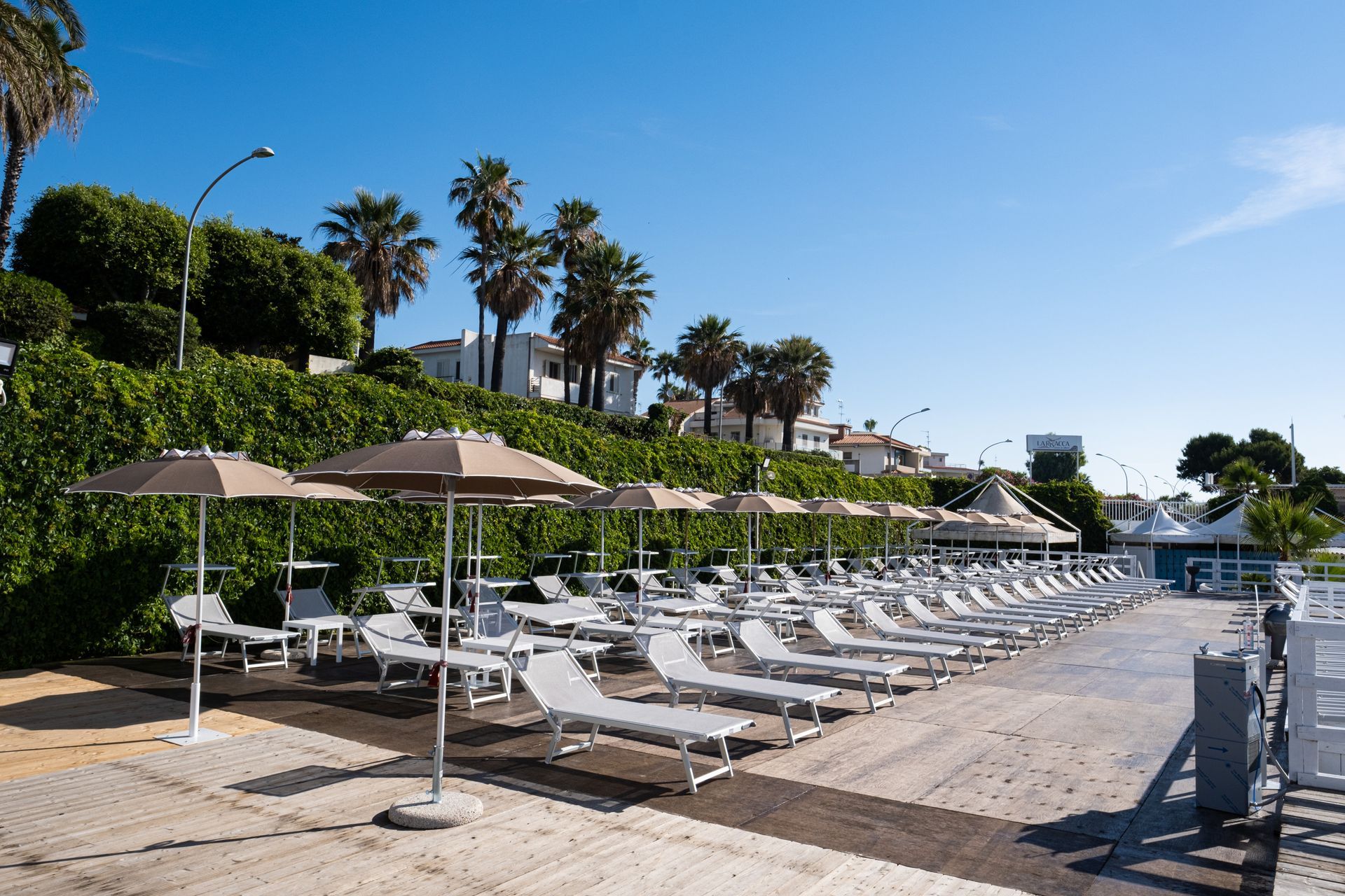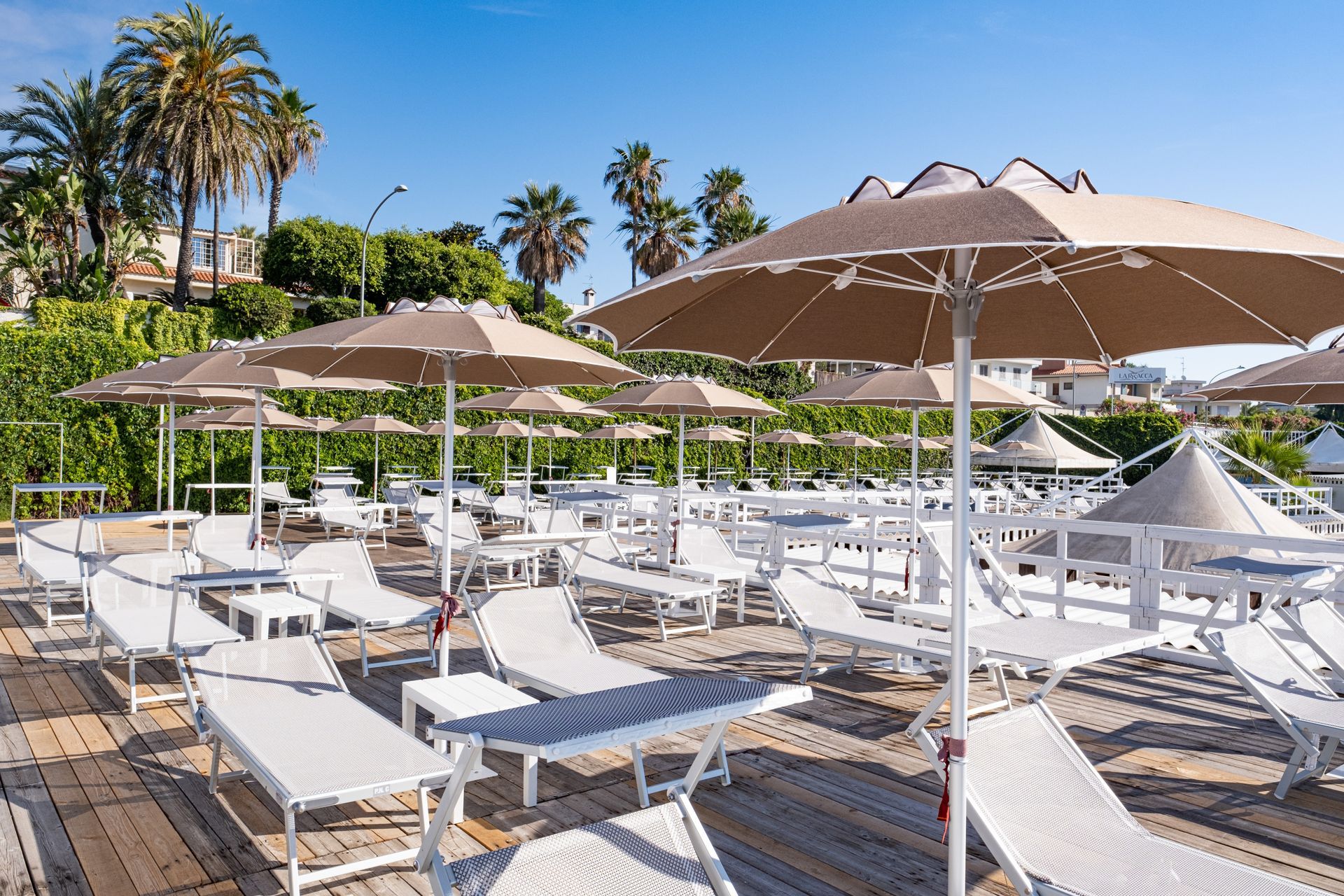 Aree Piscina, Terrazza, Chiosco, Fronte Mare, per un totale di circa 100 postazioni.